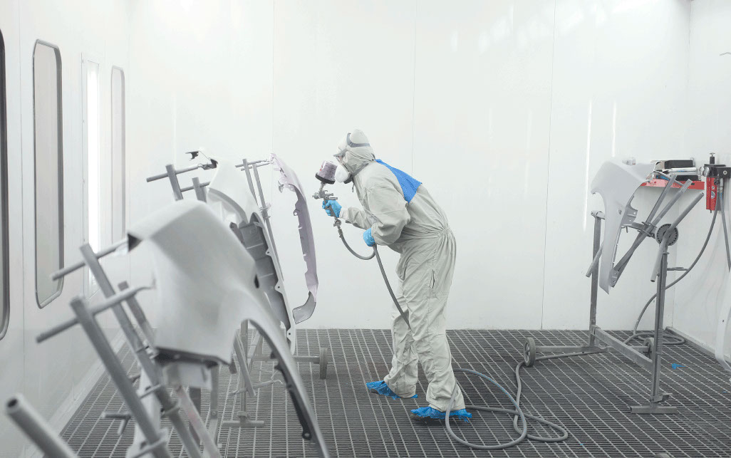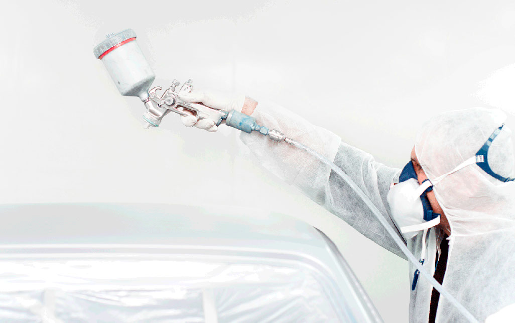 Masillas, imprimaciones, aparejos, esmaltes, barnices, aditivos, cabinas, bancadas, lijadoras, pulidoras, soldaduras, hilos, puntos, equipos infrarrojos, lavadoras de pistolas, aspiraciones, elevadores móviles, herramientas y utillaje, mascarillas, lijas, cintas, pulimentos, antigravillas, sistemas de enmascarado, etc.